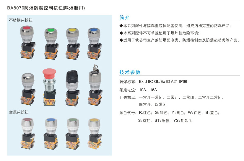 BA8070防爆防腐控制按鈕(隔爆腔用)