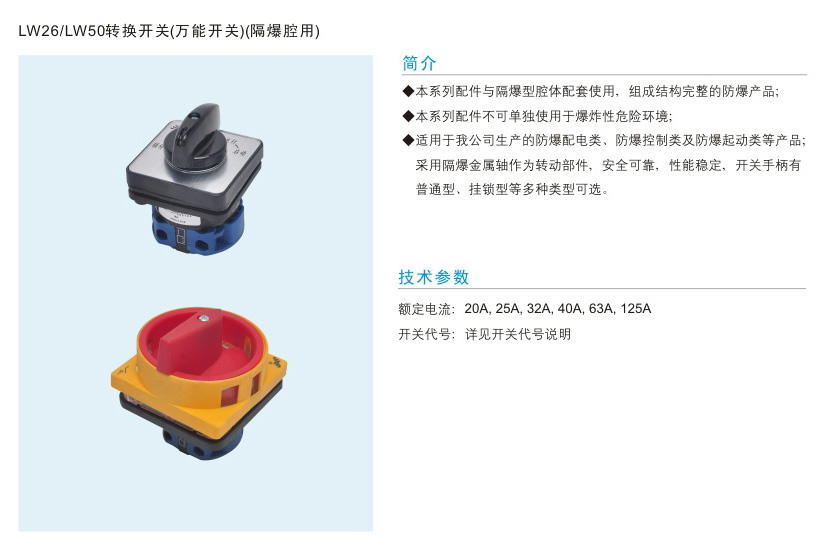 LW26 LW50轉(zhuǎn)換開(kāi)關(guān)(萬(wàn)能開(kāi)關(guān))(隔爆腔用)