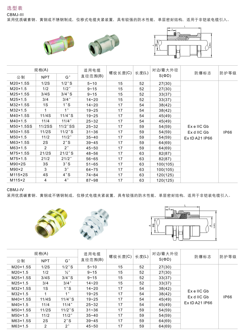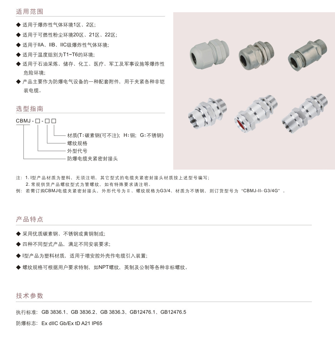 CBMJ系列防爆電纜夾緊密封接頭(dll e tD)